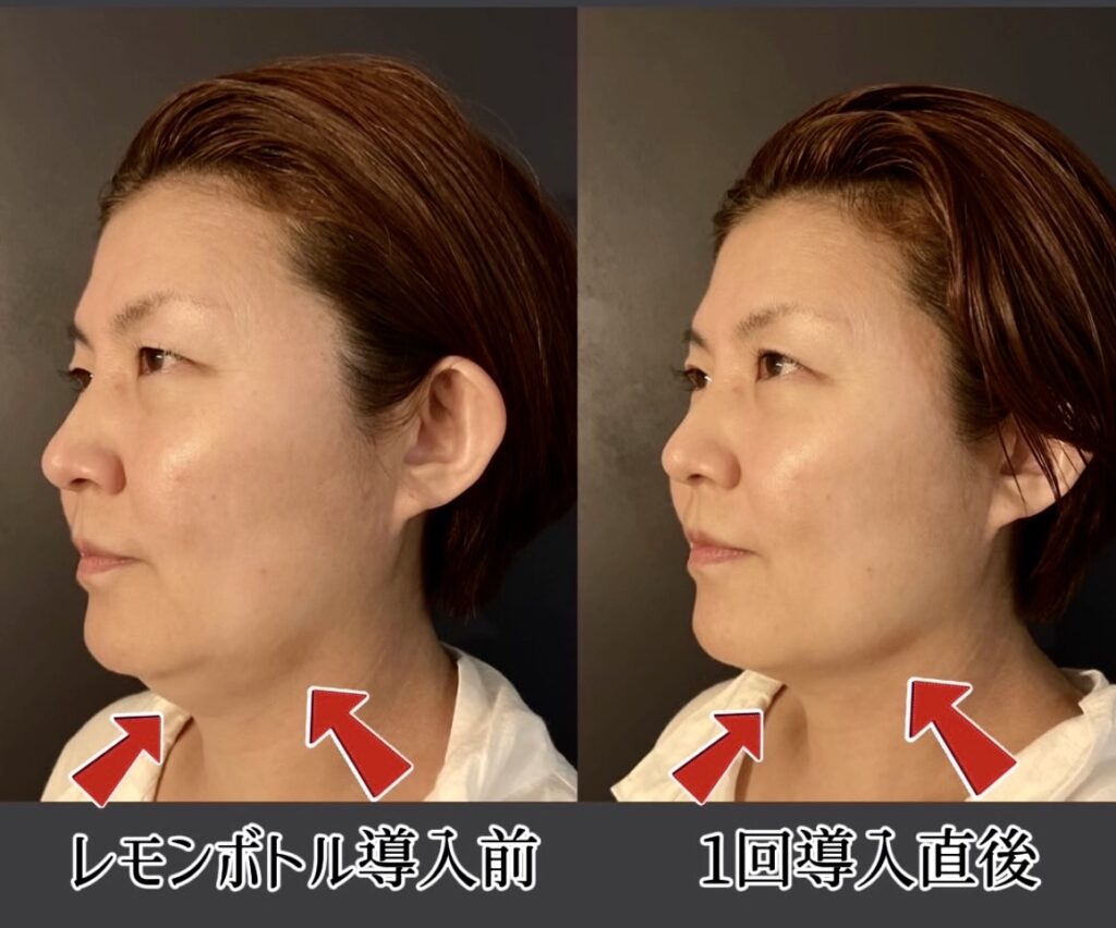 小顔矯正→クレンジング(アゴ下のみ)→ラジオ波→最新プラズマ幹細胞導入→脂肪分解剤レモンボトル導入→アゴ下脂肪分解トリートメント→お仕上げで効果絶大★
